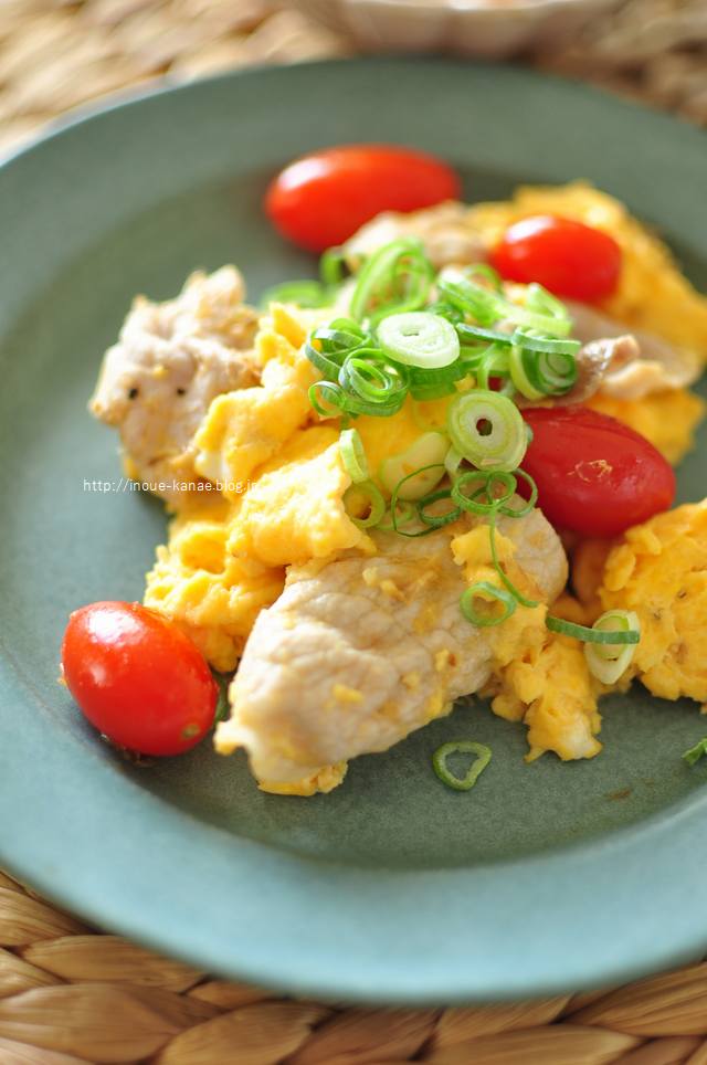 ※ミニトマトの代わりに普通のトマト1個でも。その場合は切って使うので水気が出やすいので、トマトを入れた後はさらに短時間で仕上げてお皿に避難させてください。