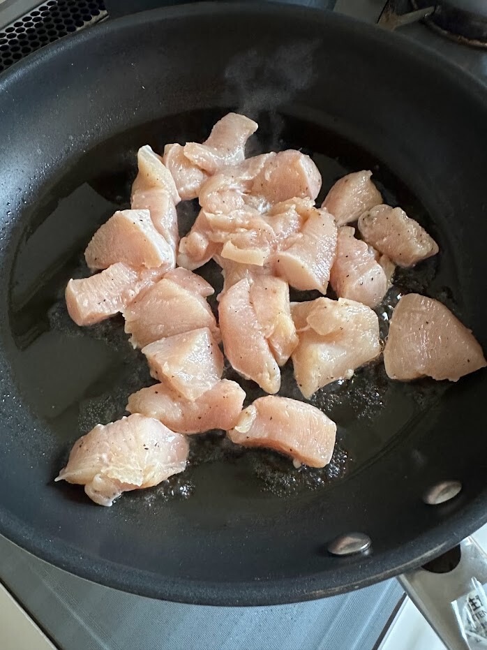 作り方1)青梗菜は3等分の長さに切り、根元は縦に6等分に切る。鶏むね肉は3センチ角に切ってAを揉みこんで10分おく。2)フライパンに油をひいて1の鶏肉を入れる。その上に青梗菜を乗せて蓋をし、中火で10分加熱する。3)フライパンを開けて混ぜ、塩、胡椒を振って味を調え火を止める。写真で見る作り方↓↓鶏むね肉は皮を外して(つけたままでももちろんOK)、3センチ角くらいに切り、下味を揉みこみます。青梗菜は根元に土が入っているので、ボウルに張ったお水の中に漬けて落とします。油をひいたフライパンに並べて青梗菜で蓋をして蒸し焼きにします。仕上げに塩、胡椒を少々振って出来上がり。蓋をして蒸しながら火を通していくので、鶏肉はふっくら、炒め物と言えども周りに油が飛び散りません。2023/09/25のレシピ