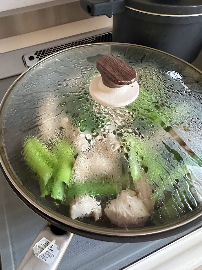 【むね肉と青梗菜のあっさり中華風炒め】 材料(2人分)調理時間20分・鶏むね肉 1枚(250g)・青梗菜 2株A・塩 小さじ1/2・醤油 小さじ1・紹興酒または酒 大さじ1・おろし生姜(チューブ)小さじ1・ごま油 大さじ1・片栗粉 小さじ2・油 大さじ1・塩、胡椒 少々※青梗菜の代わりに小松菜、キャベツ、冷凍いんげんなどでも!※もちろんですが、鶏もも肉で作って頂いても何の問題もありません。 作り方1)青梗菜は3等分の長さに切り、根元は縦に6等分に切る。鶏むね肉は3センチ角に切ってAを揉みこんで10分おく。2)フライパンに油をひいて1の鶏肉を入れる。その上に青梗菜を乗せて蓋をし、中火で10分加熱する。3)フライパンを開けて混ぜ、塩、胡椒を振って味を調え火を止める。写真で見る作り方↓↓鶏むね肉は皮を外して(つけたままでももちろんOK)、3センチ角くらいに切り、下味を揉みこみます。青梗菜は根元に土が入っているので、ボウルに張ったお水の中に漬けて落とします。油をひいたフライパンに並べて青梗菜で蓋をして蒸し焼きにします。仕上げに塩、胡椒を少々振って出来上がり。蓋をして蒸しながら火を通していくので、鶏肉はふっくら、炒め物と言えども周りに油が飛び散りません。2023/09/25のレシピ < 前の記事次の記事 > コメント コメントフォーム 名前 コメント 記事の評価 リセット リセット 顔 星 情報を記憶 コメントを投稿する
