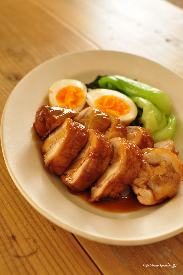 2)鍋にサラダ油(分量外)をひいて熱し、1を並べて強火で焼く。転がしながら全体に焼き目を付けたら余分な脂をキッチンペーパーで拭きとり、Aとニンニク、スターアニスを加えてふたを斜めにずらしてかけ、中火で20分ほど煮る(途中鶏肉を転がしながら)。