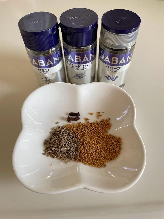 そして、ここからはお好みなんですが、ホールスパイス(パウダー状になっていないスパイス)を使って、より本格的な仕上がりを目指しました。