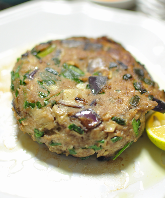 写真が残念過ぎるけど、久々のナス餃子バーグ、めちゃ美味しかった。